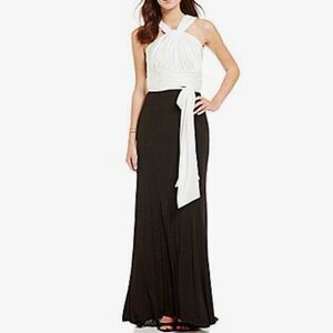 Vera Wang gorgeous twisted neck ruched ivory and black empire gown size 12 NWT