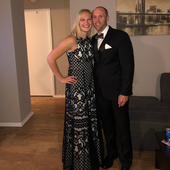 Beautiful, intricately designed black and white lace gown. Worn once to a fall gala and received compliments all night!