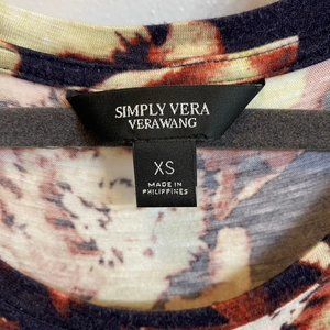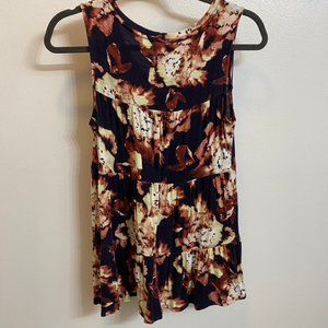Tiered tank top by Vera Wang. Blue with red, pink, yellow and white floral pattern. Size xs but it's 5% spandex and could comfortably fit a small or even medium.