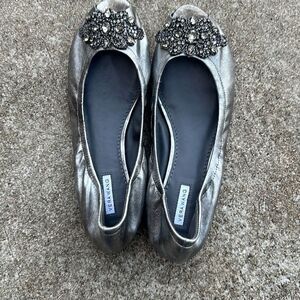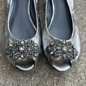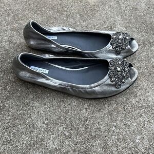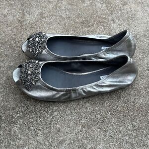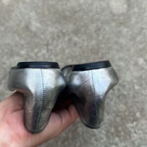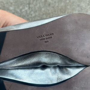 Vera Wang Silver Leather Open Toe Flats Shoes Women’s Size 6.5