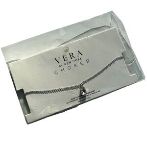 Vera by New York Silver Tone Choker Teardrop Pendant Chain Necklace New