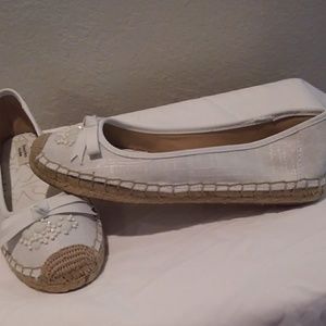 Vera wang white canvas style shoes. White beads at toe with a cute white bow. Size 9, 10.5" long. Size 8, 10" long. Ticket price 60.00. New in box.