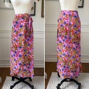 American art phenom, textile designer, and entrepreneur, the late Vera Neumann took the '60s art, fashion, and home decor world by storm with her bold color palettes and eye-catching prints. Known simply as Vera and stamped with a signature ladybug, her iconic brand pioneered a cross-licensing empire to make her art affordable and accessible to all. Producing one print each day of her life, Vera created thousands of artworks that have been copyrighted in the Library of Congress and displayed at revered institutions such as the Smithsonian, the Met, and MoMA. Today, we're excited to celebrate Vera's legacy in an exclusive, only-at-Anthro collection that turns some of her timeless designs into wonderfully usable items for your daily life. Laying flat measure 16.5 inches straight across the waist, 22.5 inches across the hip and 33 inches long. It looks like a wrap skirt, but there is back zip closure.