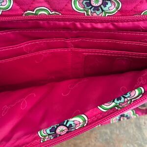 Vera Bradley Little Hipster Pink Swirls Flowers Purse Adjustable Strap Pink Plai