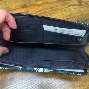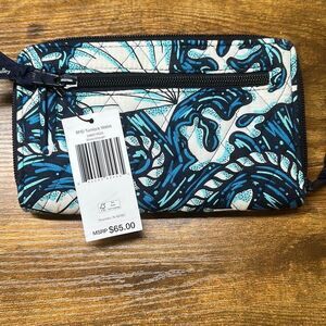 Vera Bradley Wallet Turnlock Shore Enough Print RFID Blue Turtle Sailboat