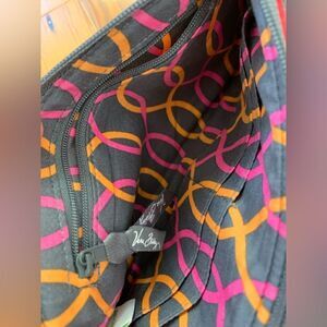 Lightly used. Bold floral print. Strap is missing (see picture). Measurements included.