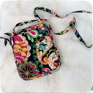 Great crossbody bag by Vera Bradley Disney collaboration. Style midnight with Mickey. Features adjustable strap and tons of pockets. Good used condition, it does have some areas of discoloration and would benefit from a good cleaning