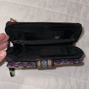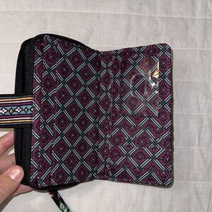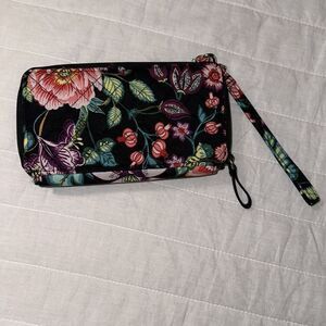 Vera Bradley Iconic RFID Black Multi Quilted Wallet Wristlet Vines Floral