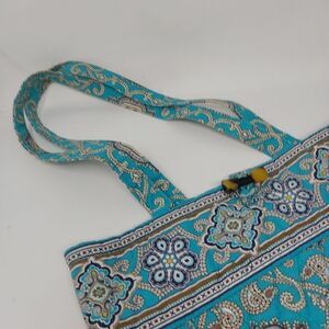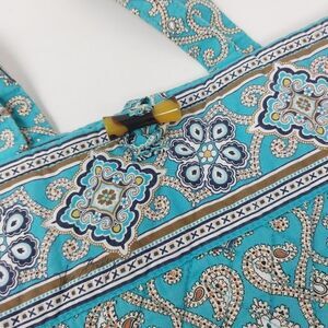Vera Bradley Tote Bag. Measurements are approximately 13" x 13" x 4". Good used condition. Nice quilted tote. Straps are approximately 25".