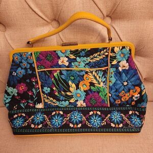 Vera Bradley Yellow Blue Floral Barbara Frame Handbag Purse