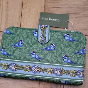 This is a brand new Vera Bradley continental wallet. It is in perfect condition. No tags but has never been used. No marks or wear of any kind. Very nice soft pebble leather. Comes with black drawstring as shown in photo. Measures 8”x4”x1”. Comes from smoke free home.