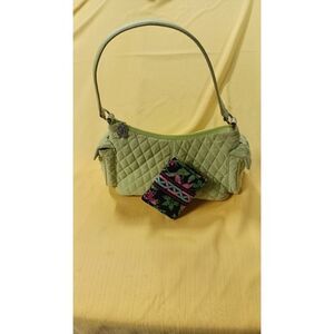 Green quilted purse and vine and flower themed wallet from vera bray. In good condition