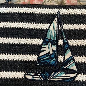 Vera Bradley large wristlet sailboat on the front brand new with tags the size is 10 x 7 nautical themed? The color is navy and white.