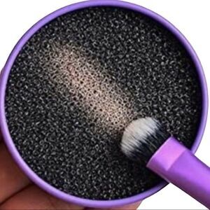 Inspired by a common makeup artist dilemma of how remove powder product from brushes without the drying time of a liquid brush cleaner, this sponge offers a dry alternative. The special material allows you to remove pigment from your brushes without brush cleaner formula. Simply swipe the brush over the sponge until pigment is removed and move on to the next color. The sponge is completely reusable and can be cleaned by washing it with warm water and soap or it can be sprayed with disinfecting brush cleaner for a quick cleanse.