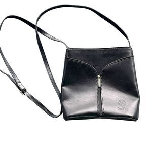 Vera Pelle, Italian Crossbody, black leather zip up unique bag. Super cute.
