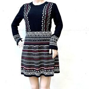 Vera Wang 2-Piece sweater and skirt matching set in Christmas colors and pattern. Outfit can be worn tucked in or out and would look great with some tall boots or heels, or wear them separately with jeans or blouse and vest to create simple multiple looks. S