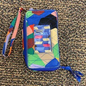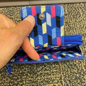 Vera Bradley blue geometric pattern pocket wallet bag. EUC, good shape, approximately 5 x 7 x 2” see pictures for details.