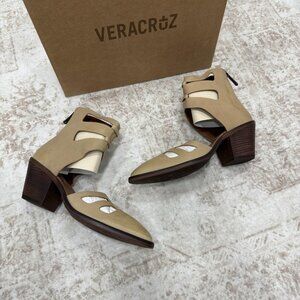 Veracruz Boots Womens Size 40 Tan Leather Cutout Ankle Block Heel Zip 107348