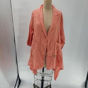 Verandah by Vina Orange Poncho Free Size tunic top 100% linen lagenlook peach
