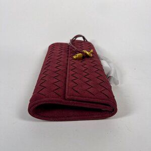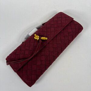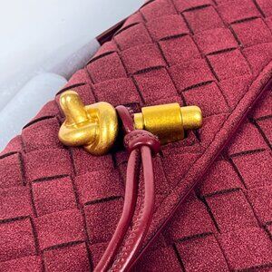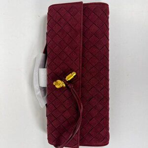 The Riyadh Clutch Bag by Verano Hill is a striking statement piece designed for modern sophistication. Crafted in a burgundy woven exterior, it’s finished with a standout gold knot lock that adds a touch of luxury.
