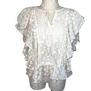 Verb By Pallavi Singhee Allyson Lace Blouse Womens Size Large L Ruffled White