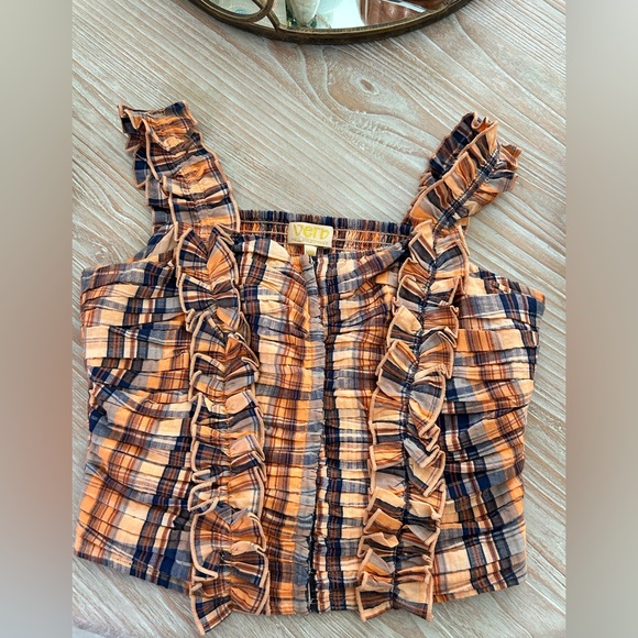 Super cute top Purchased from anthropologie Size xs does have stretch to it No flaws Worn 3 times Smoke free home