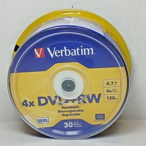 Verbatim Americas 4x Speed DVD+RW Rewritable 1000x, 30 Pack 4.7 GB 120 Min SERL