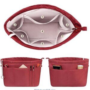 Vercord Purse Insert Organizer for Tote Handbag Size Small Multi-Pocketed RED