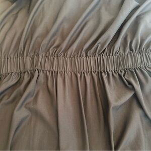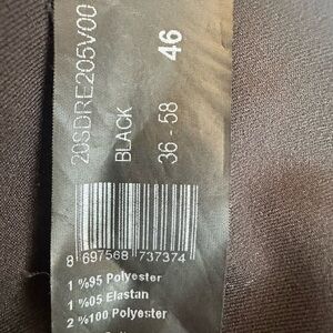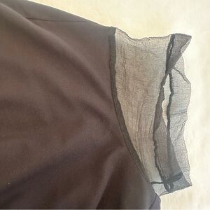 Discover elegance with this chic black dress, featuring subtle accents for a touch of flair. Perfect for any occasion. Features tulle sleeves, embellished pockets, and elastic below waist in the back.