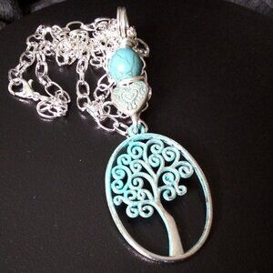 Verdigris Patina Painted Tree of Life Necklace 24" - Boho Beach Summer Vacation