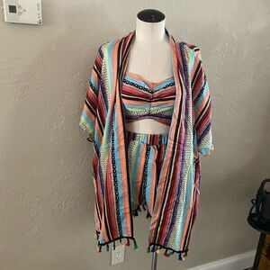 Verdusa Woman’s 3 pc Boho Shorts set with Kimono Sz Med