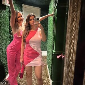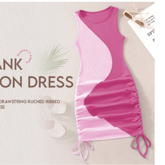 Pink Verdusa Women's Color Block Drawstring Ruched Ribbed Mini Tank Bodycon Dress