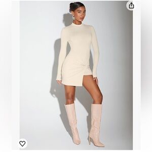 Verdusa Women's Small Backless Mock Neck Long Sleeve Bodycon Mini Dress