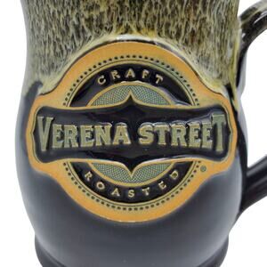 Verena Street Coffee Mug 14oz Deneen Pottery Black Beige Green Drip Glaze Cup