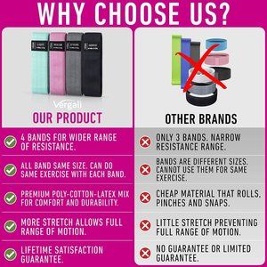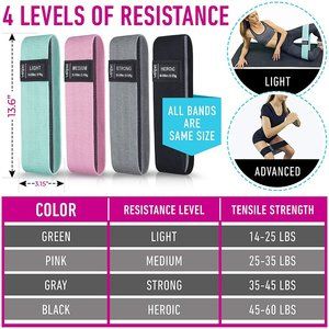 Vergali Fabric Booty Bands for Women Butt and Legs. Set of 4 Non Slip Cloth