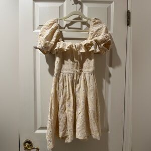 Sold out online Shirred detail with puff sleeves for a perfect femme look - the front tie strings have bells on them