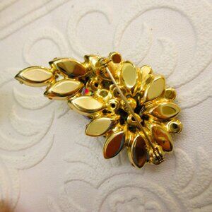 Marks of verified Juliana construction are present, including layered, prong-set stones, one-pin construction, figure eight puddling, rivets, and the use of Austrian Crystal Rhinestones.