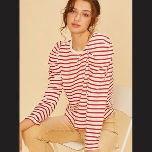 Verify Striped Puff Shoulder Top