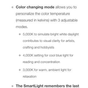 SmartLight Full Spectrum LED Desk Lamp helps you to see details more clearly and colors more accurately. We’ve created a customizable lighting solution that is perfect for readers, artists, hobbyists, crafters, and anyone seeking a powerful lamp with adjustable light. This lamp offers true color rendering to illuminate the details and easy-to-use controls that allow you to change both color temperature and light intensity. Whatever your passion, and no matter how small the details, the SmartLight will make sure you always have just the right light for the task.