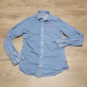 Verizon Shirt Womens Small Blue Chambray Work Uniform Classiccore Chore Casual