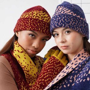 Soft jacquard knit scarf with organic pattern and mixed chenille texture.