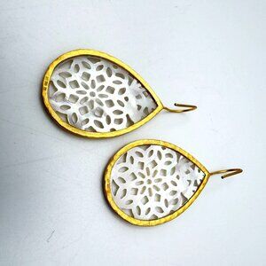 Vermeil 925 Sterling Silver Teardrop Earrings Mother Of Pearl Lasercut Inlay