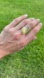 Beautiful adjustable ring with chalcedony surrounded by bright, white, CZ’s. Base metal is .925 Sterling Silver plated with 18K yellow gold.