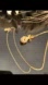 The necklace is 9 inches long and no stones are missing. It’s in good condition.