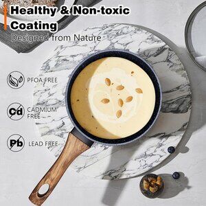 • 【Hign Standard Craftmanship & Quality】The Vermonga 2-quart saucepan features a high-performance non-stick granite stone coating. This coating is not only highly efficient but also environmentally friendly, being free of PFOS and PFOA. The saucepan is meticulously crafted from top-rated cast aluminum for outstanding durability and performance.