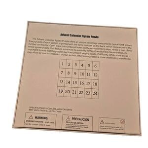 This puzzle was done one time. The little boxes for the pieces are gone but the numbers for which day of the month you do them is printed on the back.