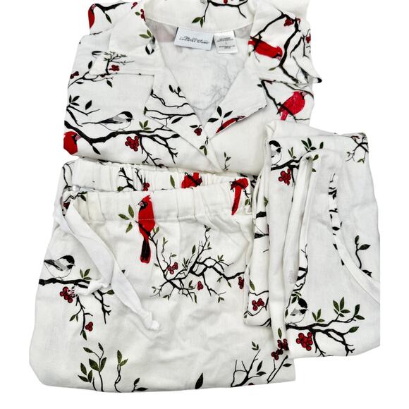 Vermont Country Store 3-Pc Portuguese Flannel Pajama Set Winter Cardinal Large