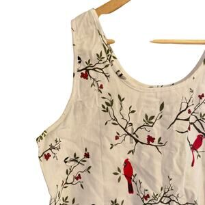 3-piece pajama set from The Vermont Country Store, crafted from premium Portuguese cotton flannel with a red cardinal print on a soft ivory background, this set includes a button-front top, elastic waist pants, and a matching flannel tank—perfect for cozy layering through the seasons.