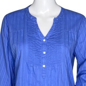 Vermont Country Store Shirt Women Medium Blue Stripe Popover Casual Boho Peasant