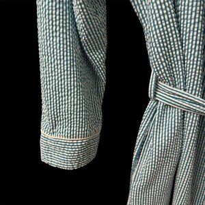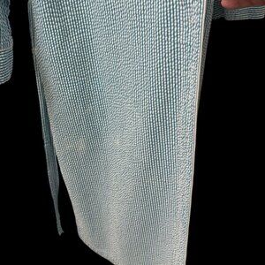 Vermont Country Store Womens Teal Seersucker Robe Size M Striped Loungewear Pool